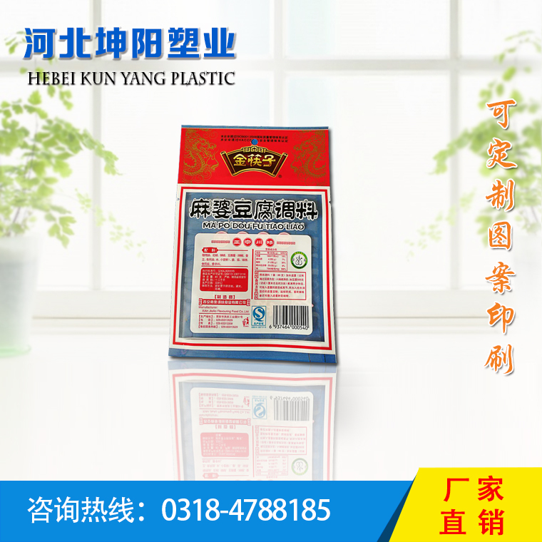 ? ? ? ? 河北坤陽塑業有限公司是一家集定制,設計,印刷于一體的包裝袋生產企業,本公司擁有十色印刷機、高速復合機、制袋機等設備,專業生產食品袋、真空袋、拉鏈自立袋、鋁箔袋、火鍋調料袋、奶食品袋、醬菜袋、五邊封袋、高溫蒸煮袋、UV印刷復合袋、易揭封口蓋膜及各種包裝復合膜、超市專用手提袋、手撕袋、托盒等。公司歡迎各界人士前來咨詢洽談。